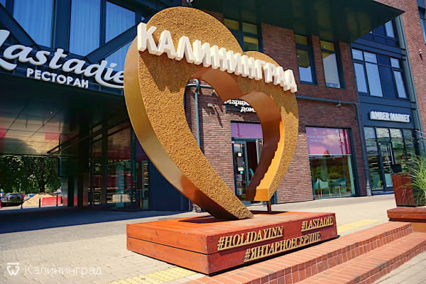 Внушительное сердце с человеческий рост выполнено из мелких кусочков янтаря, что очень символично, т.к. Калининградский край является одним из немногих мест, где водится этот редкий камень. Крупная надпись "Калининград" добавляет особой ценности для гостей города, ведь здесь можно сделать великолепные снимки на память ?