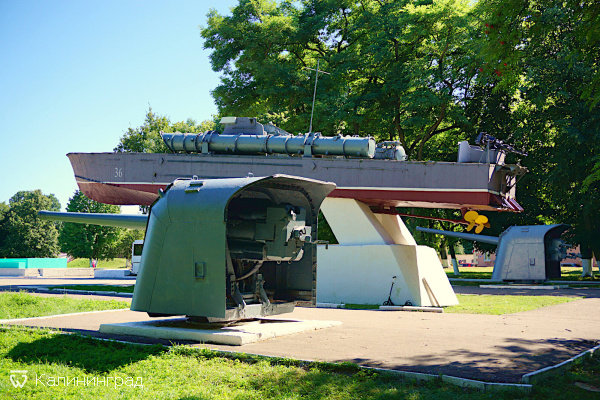 Музея Балтийского Флота. В теплое время года его окружают местные дети: они устраивают посиделки и игры прямо на постаменте. Оружие по бокам от катера тоже выглядит очень внушительно. Дети и мужчины точно оценят ?
