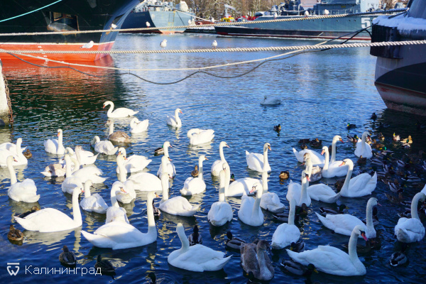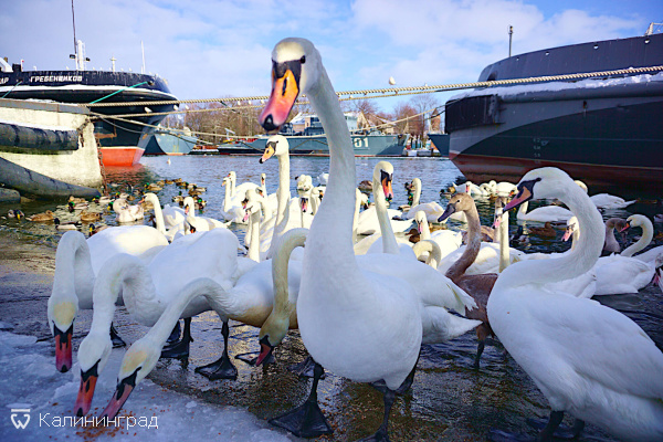 Зимой здесь просто огромное количество птиц – зимуют. Голодные лебеди едят прямо из рук.