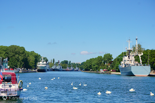 Прямо возле самой известной гостиницы города "Золотой якорь", которая стоит на берегу канала, на небольшом причале, обитают лебеди. Привыкли люди, привыкли птицы и, кажется, все довольны.