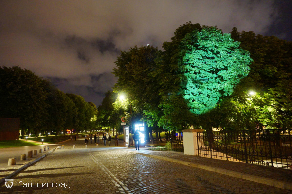 В теплый сезон – когда деревья покрываются листьями – на кроне дерева возле Медового моста можно увидеть проекцию головы Имманула Канта. Проекция появляется ежедневно по вечерам: в 21:00, 22:00 и 23:00, длится 10 минут.";s:4:"TYPE";s:4:"TEXT";}