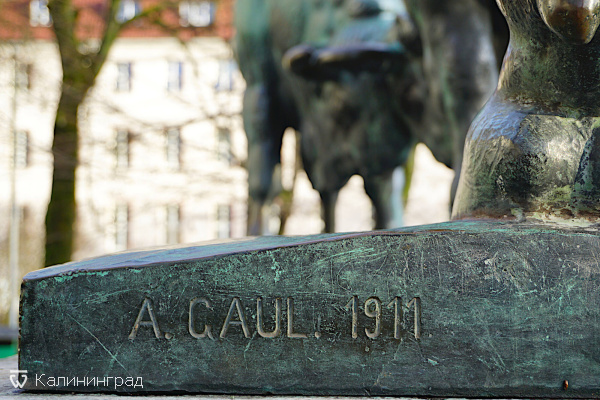 Эта работа была установлена еще во времена Кёнигсберга. Её изготовил знаменитый скульптор-анималист Август Гауль в 1911 г. Прежде чем работа из бронзы была отлита, он много времени провёл, наблюдая за животными и делая наброски.