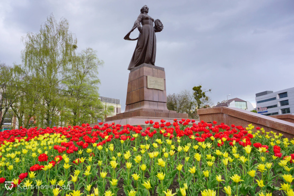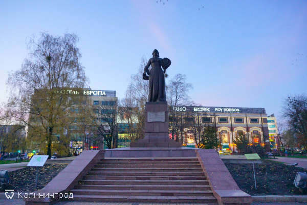 Рядом с монументом обширный сквер и фонтан. Это место встречи и посиделок калининградцев, здесь всегда достаточно многолюдно. Памятник знают почти все калининградцы, но мало кто знает его настоящее название. Спросите любого рядом стоящего с этим памятников, как он называется. С очень большой вероятностью вы услышите в ответ "Мать-Родина". Мы и сами до недавнего времени так думали 🙂