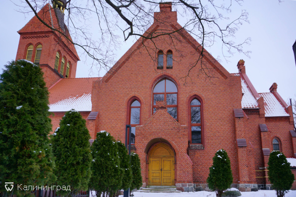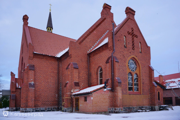 Это величественное здание, как и многие кирхи в области, выполнено из красного кирпича, и выглядит достаточно величественно – скорее всего, за счет своей высоты. На одной из стен постройки, со стороны внутреннего двора, можно найти камень с высеченным годом закладки – 1896 г.