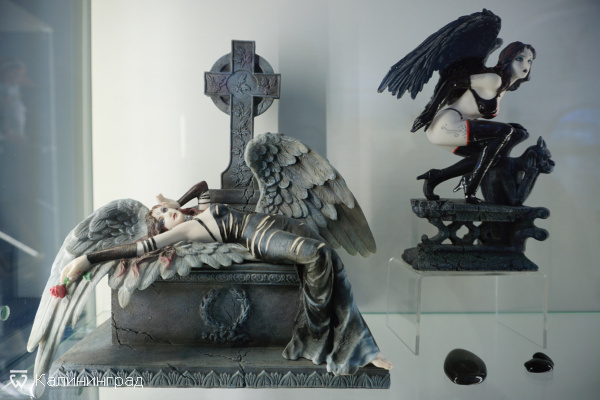 Двухэтажный Домик ангелов маленький и светлый. Экспонатов очень много, и все они невероятно разные. Нам очень понравилось, что ангельская тема раскрыта всесторонне. Создатели не ограничились привычными образами. Здесь можно встреть ангела в абсолютно разных интерпретациях: турбо-ангела, ангела из ножей и других столовых приборов, курящего ангела и падшего.
