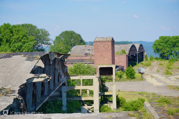 Вы увидите эти ангары издалека – когда будете двигаться в сторону Балтийской косы на пароме. Некоторые из них сохранились лучше, некоторые хуже, какие-то разобраны совсем. На одном из ангаров даже сохранилась лестница на крышу. Кто осмелится подняться, будет вознаграждён прекрасным видом на Балтийскую косу и Калининградский залив.