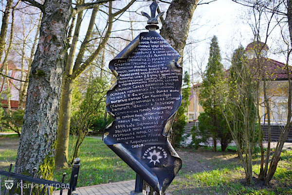 Макет огорожен невысоким забором – все детали просматриваются отлично. Сам остров расположился на вполне реальной брусчастке, что придает образу особое очарование. Рядом стоит стилизованная под старину табличка, на которой можно почитать информацию о Кнайпхофе.