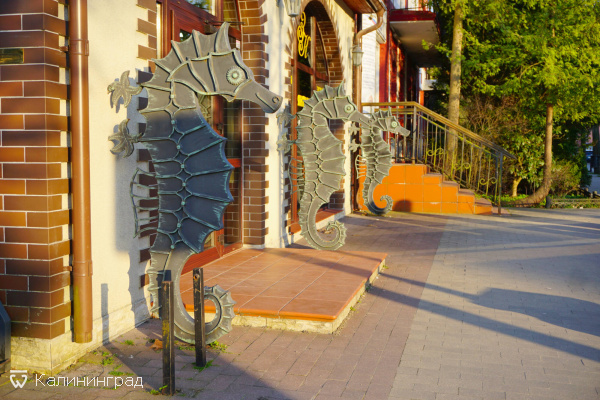 Однозначно советуем остановиться возле этой достопримечательности. Кстати, вход в магазин тоже украшен художественно: по обе стороны стоят кованые полуметровые морские коньки. А само здание выполнено под старину и очень удачно вписывается в архитектуру Светлогорска.";s:4:"TYPE";s:4:"HTML";}