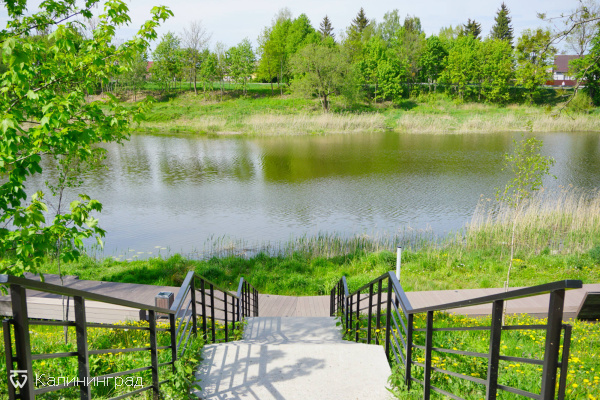 Парк полностью облагорожен: клумбы, фонтан, скамейки, дорожки, туалет, детская площадка. Есть спуск к воде – Мельничному пруду – на берегу которого построена набережная.