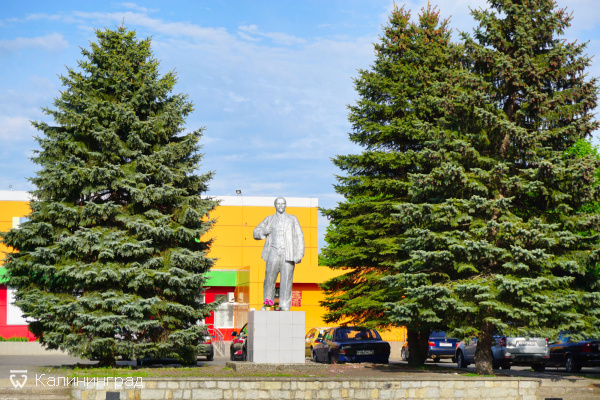Вокруг площади сосредоточены магазины, и видно памятник Ленину ?