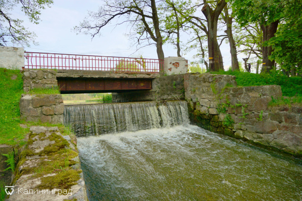 Рядом с мельницей есть еще одно немецкое здание, в котором обустроено кафе. Вокруг ухоженная территория и водопад. Место очень приятное и уютное.