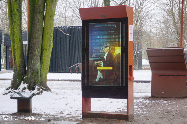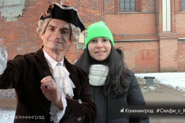 Нам этот проект очень нравится! Работает интуитивно понятно и просто. Главное найти стенд и нажать кнопку "Сделать селфи". А дальше актер, переодетый в Канта, подскажет, что делать.