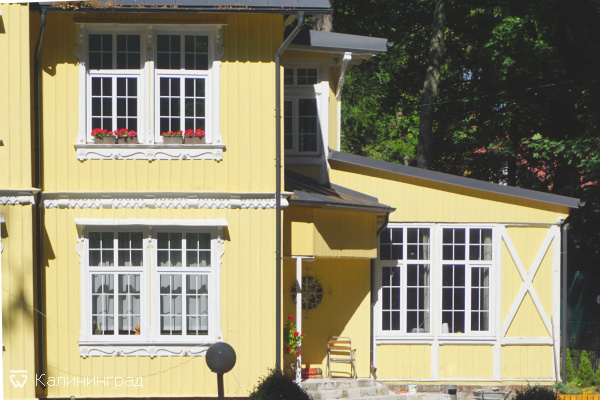 Облицована деревом, выполнена в желтых тонах. Особого шарма добавляет узкая, почти игрушечная, башенка. И в целом, вид у виллы немного ненастоящий – сказочный. Прилегающая территория лишь дополняет эту атмосферу: цветы, фонари, романтичная статуя ?