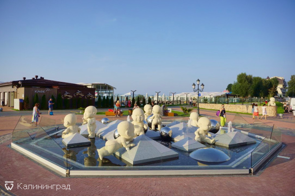 Зеленоградске в августе 2023 года. Работа выполнена по заказу застройщика на территории жилого комплекса по ул. Гагарина. Официальное открытие и запуск фонтана, который является доминантой небольшого парка этих арт-объектов, состоялось в день города – 2 сентября.