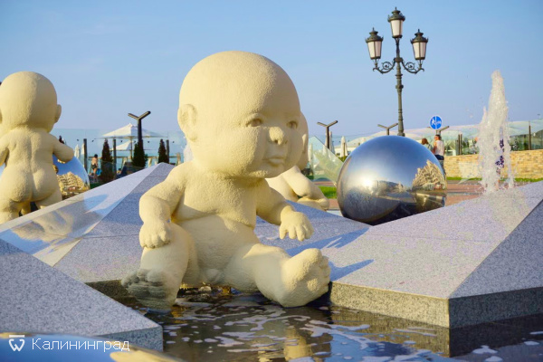 Большинство младенцев являются композиционной частью фонтана, остальные разбросаны по территории жилого комплекса. Найти их всех достаточно легко из-за размеров – они очень массивные!