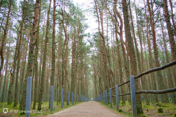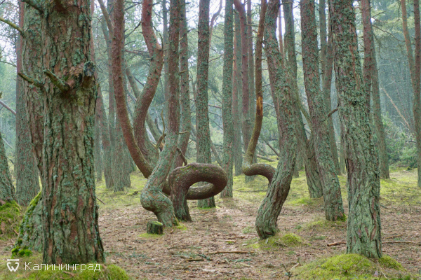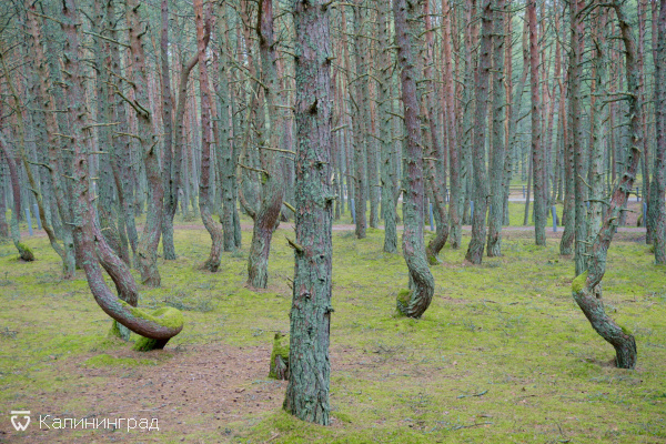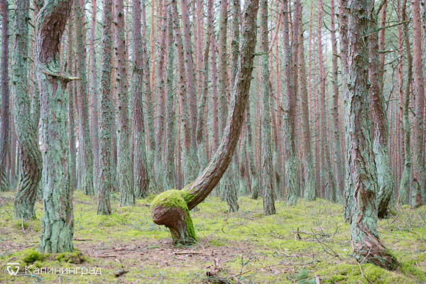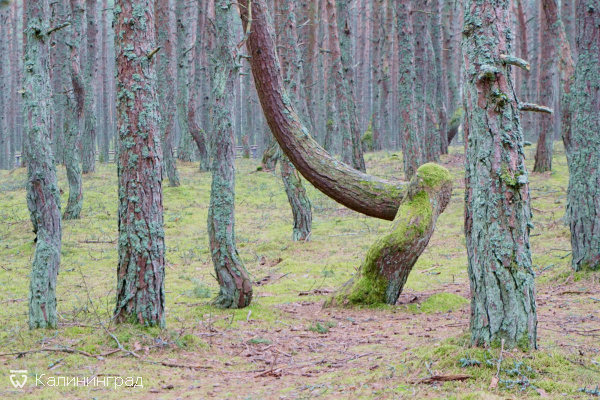Куршской косе, отличающийся необычными изогнутыми стволами деревьев. Местные жители также называют это место "Пьяный лес".