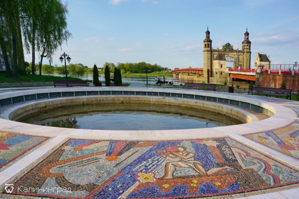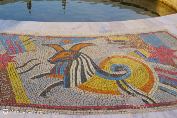 Фонтан был построен в конце 70-х – начале 80-х годов. Парапет вокруг фонтана декорирован мозаикой смальты. Работу выполнил калининградский художник Юрий Смирнягин в технике "прямой набор": это значит, что он набирал мозаику не в своей мастерской, а прямо на месте.