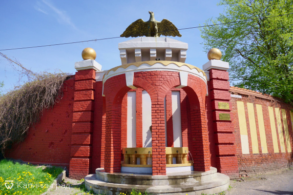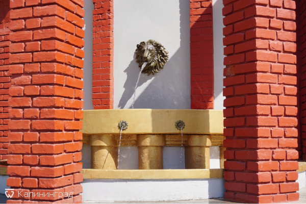 По старым фотографиям и документам специалисты воссоздали кирпичные арки, ступени фонтана, и самое главное – прусского орла. Во время реконструкции появился и новый элемент – маскарон льва, который был приобретен в Мариинском театре в Санкт-Петербурге.