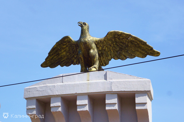 Сначала скульптура орла была установлена на городских Высоких воротах. А после того как в 1861 г. их снесли, она долго украшала один из складов где-то в районе современной ул. Герцена. Когда начали подготовку к празднику по случаю 360-летия Тильзита, орла перенесли на его последнее место жительства – новый судейский фонтан.