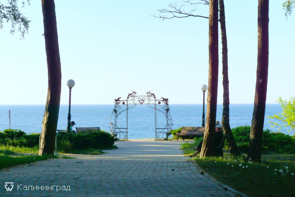 Арка влюбленных расположена в живописном месте – над обрывом с видом на море. Она находится в парке "Сосновый бор" и воспринимается его кульминацией.