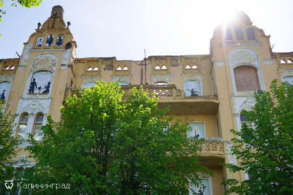 Как и другие исторические здания в Советске, оно достаточно высокое. И даже несмотря на разрушения в нем проглядывается былое величие. Ризалиты, ажурные балконы, декорированная дверь... Если примешать сюда немного фантазии, то все это вызывает скорее симпатию.