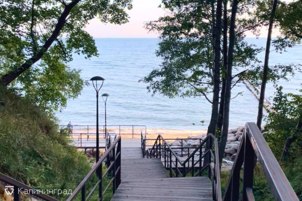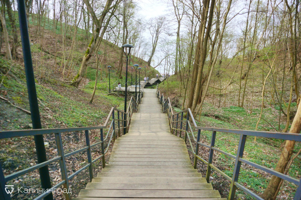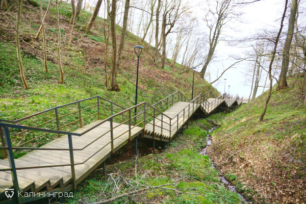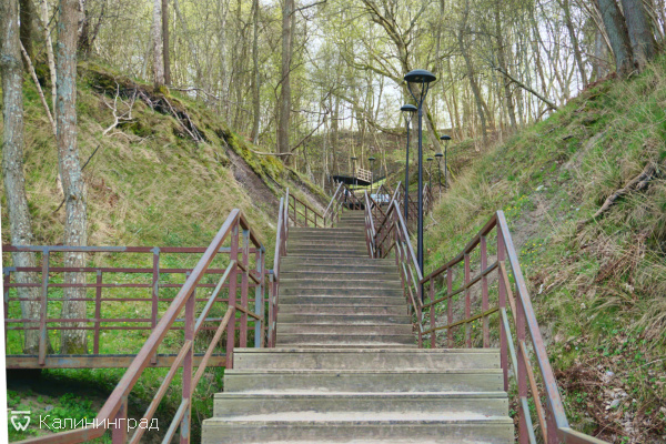 Длинная многоступенчатая лестница с небольшими площадками на разных уровнях проходит сквозь живописный гористый лес, а внизу – море, которое с высоты выглядит совершенно потрясающе! Особенно красиво здесь в солнечные дни, когда море играет разными цветами. В такие дни кажется, будто это и не Балтика вовсе ?