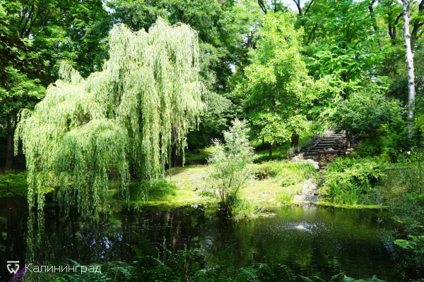 Пруд находится в низине парка. К нему ведет совершенно очаровательная лесенка, и стекает журчащий ручей. Вокруг раскинуты скамейки, а в самом пруду летом цветут кувшинки, и плавают золотые рыбки – много-много рыбок, которые не боятся людей и подплывают к самой поверхности. Над водой свисают ветви плакучей ивы... Всё вместе выглядит поистине сказочно ✨