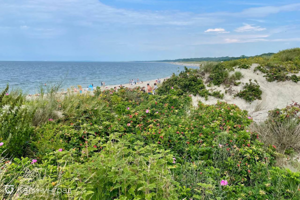 А вообще, Балтийский пляж прекрасен! Роскошные дюны, зеленые леса, заросли шиповника; кое-где можно даже встретить сирень и васильки, растущие прямо из песка ?