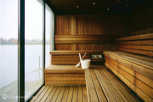 Панорамные окна в финской сауне и русской парной. Паримся с потрясающим видом на озеро и набережную. Сидеть в тепле под расслабляющую музыку, любоваться птицами на озере и проходящими мимо людьми – невероятное удовольствие! Видно даже колесо обозрения в парке "Юность" и Музей янтаря 😍